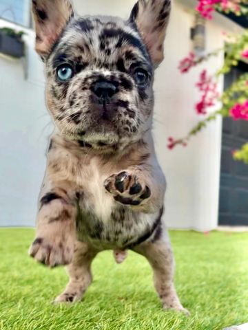 Beau is a male blue Merle AKC registered French Bulldog