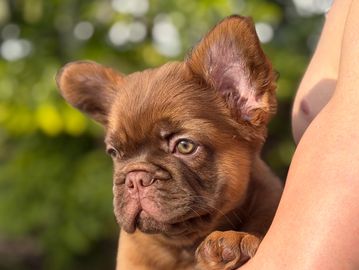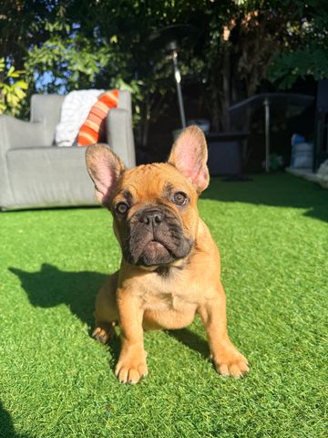 Marshall is a male rojo AKC registered French Bulldog